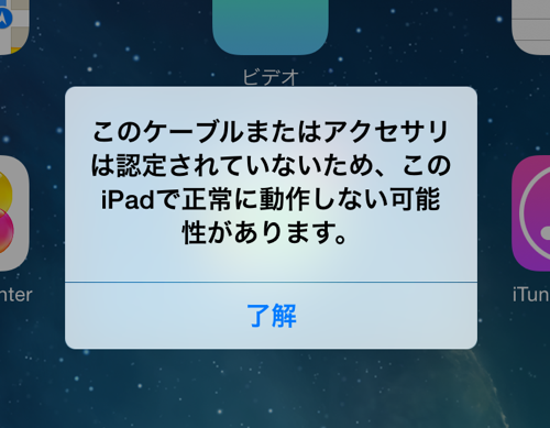 ドスパラで買った非認証ライトニングケーブルが、2,3日使うと「このケーブルまたはアクセサリは認定されていないため、このiPadでは正常に動作しない可能性があります。」というメッセージが表示され、充電できなくなりました。