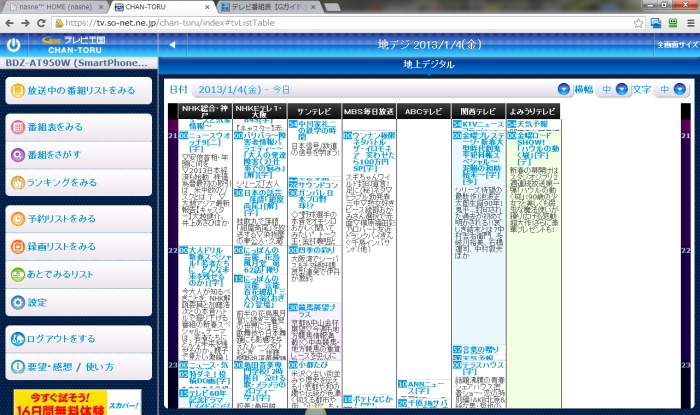 外出先からXPERIAを使って、nasneで録画予約をし、翌日、その番組をnasneからXPERIAへワイヤレス転送して、外出先でその番組を楽しむなんてライフスタイルはいかが!? ということで、今回はXPERIA VLでnasneで番組予約をする方法の紹介です。 テレビ王国C... -