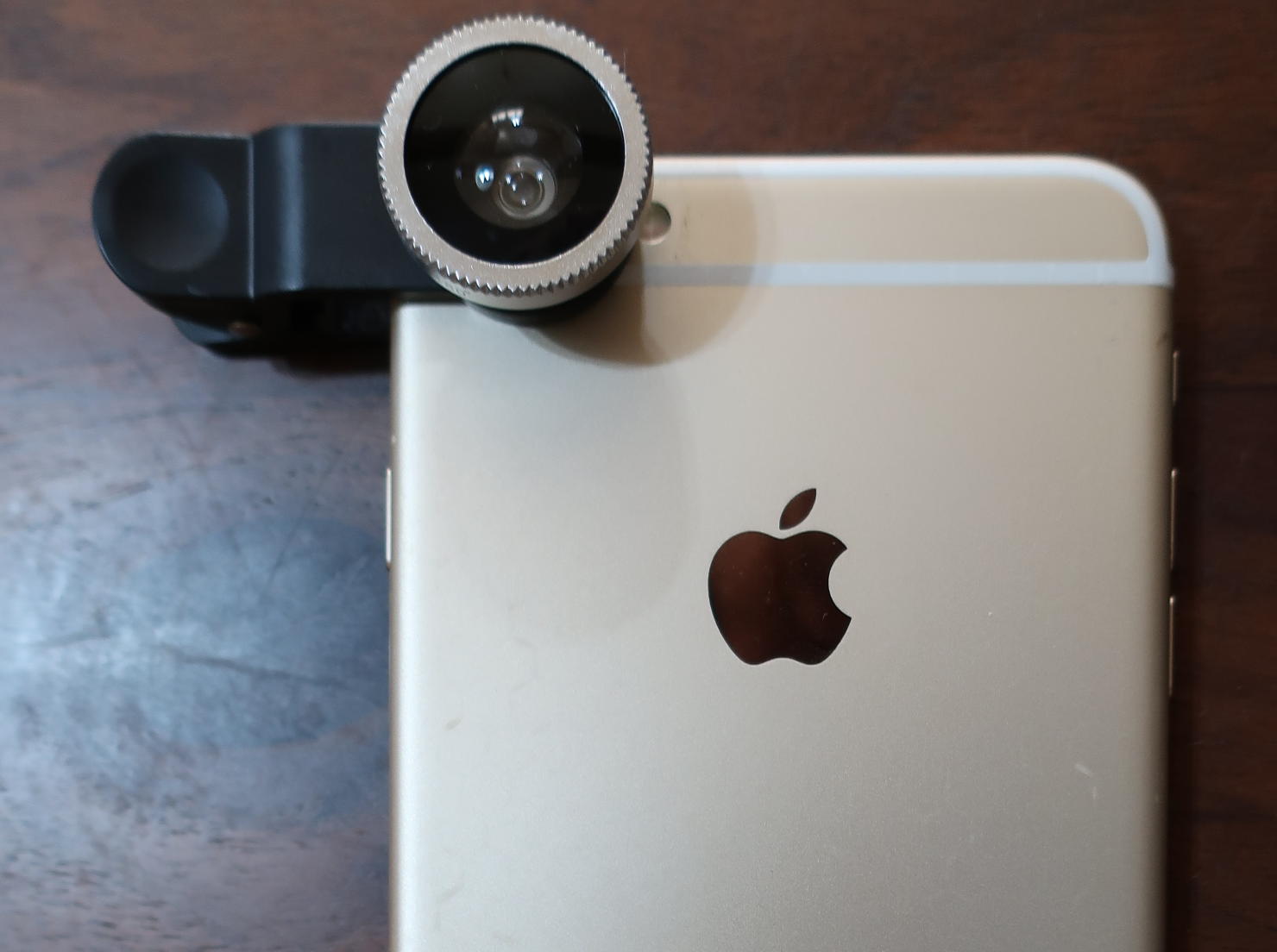 早速、筆者のiPhone6に付けてみた。魚眼レンズは大きいですね。